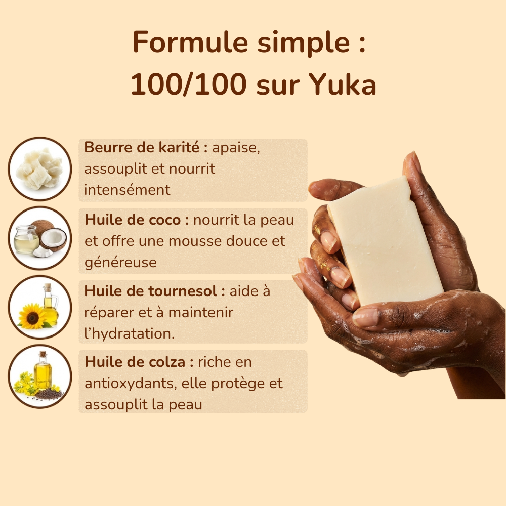 Un savon doux et nourrissant, formulé à base de karité et de coco. Il nettoie la peau sans l’assécher, tout en laissant une sensation de confort et de douceur au quotidien.